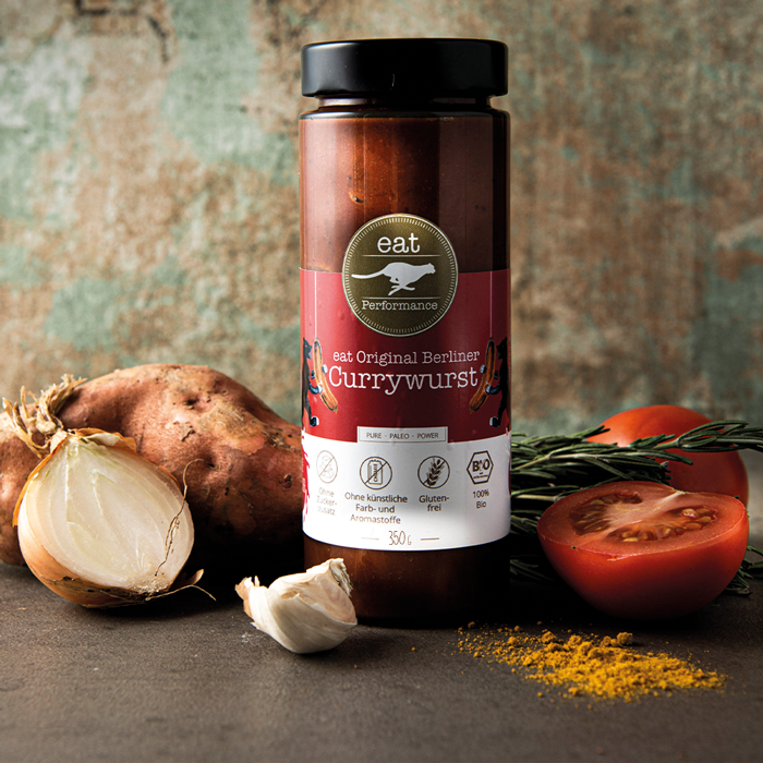 | Zutaten | Wurst o. Darm vom Apfelschwein* (46%), Wasser, Tomatenmark*, Tomaten*, Apfelsaft naturtrüb*, Pflaumen getrocknet*, Ahornsirup*, Meersalz, Curry Pulver* (1%). | |||
