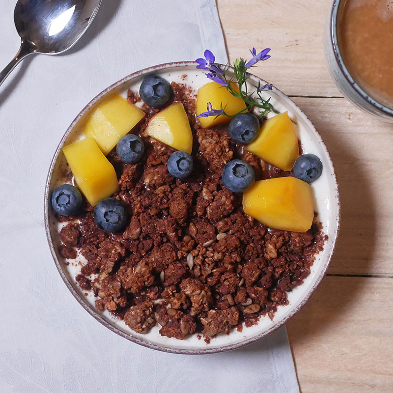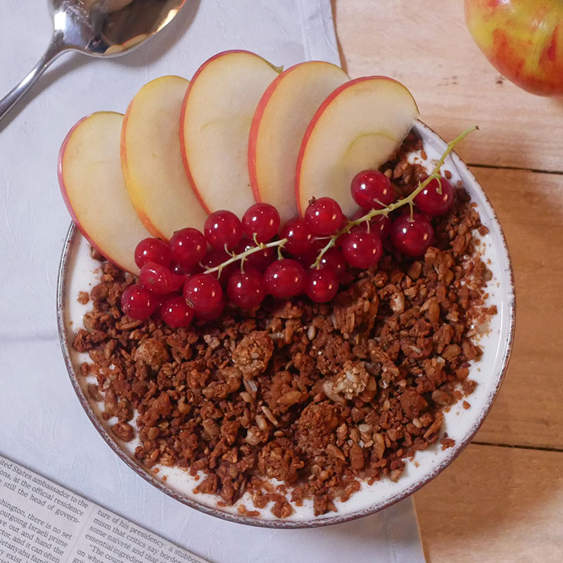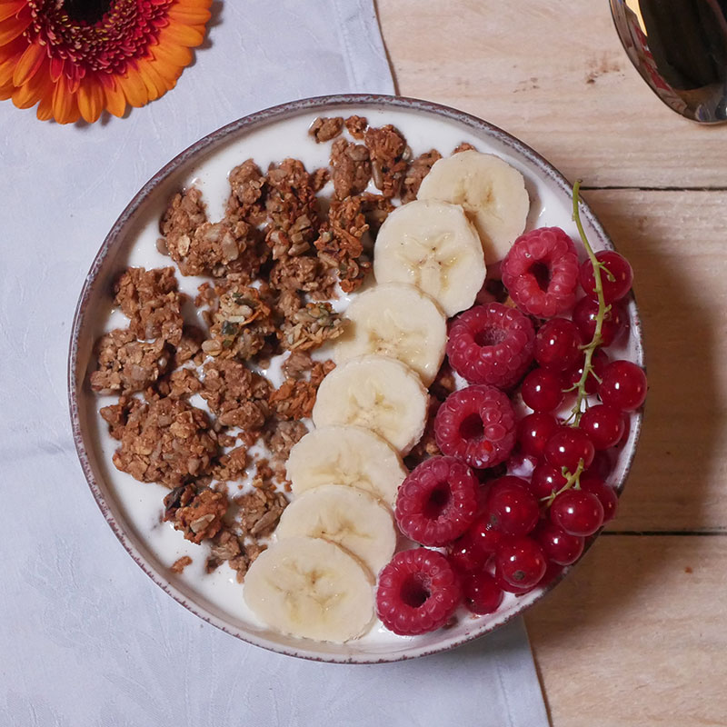 Wir lieben unser eat Müsli. Vollkommen ohne Getreide und mit vielen leckeren Nüssen. Aber die Nüsse sind für viele Menschen ein Problem, weil sie eine Allergie darauf haben. Deshalb wollten wir etwas neues entwickeln. Ganz ohne Nüsse und vollkommen ohne Allergene. So entstand die Idee zu unserem leckeren eat Granola.
